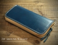厳選したレザーを使用し、足踏みミシンで1針1針縫い上げたラウンドファスナー式長財布。